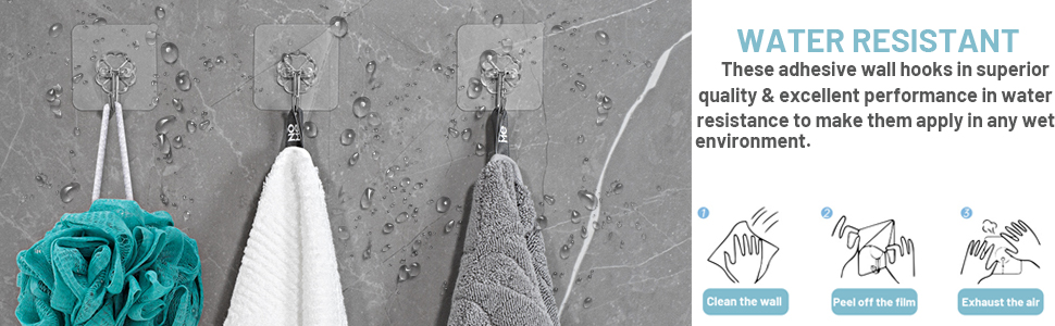 Made of 304 stainless steel and PC, these wall hooks are anti-rust which is super durable for long time use, while the strong adhesive backing offers an excellent performance in loading capacity of 33lb/15 kg to hang the heavy items.